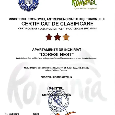 Coresi Nest Apartment - Pet Friendly Braşov, situado a tan solo 350 metros de la BELAQVA Active Wellness, ofrece Wi-Fi tanto para estancias de negocios como de ocio.